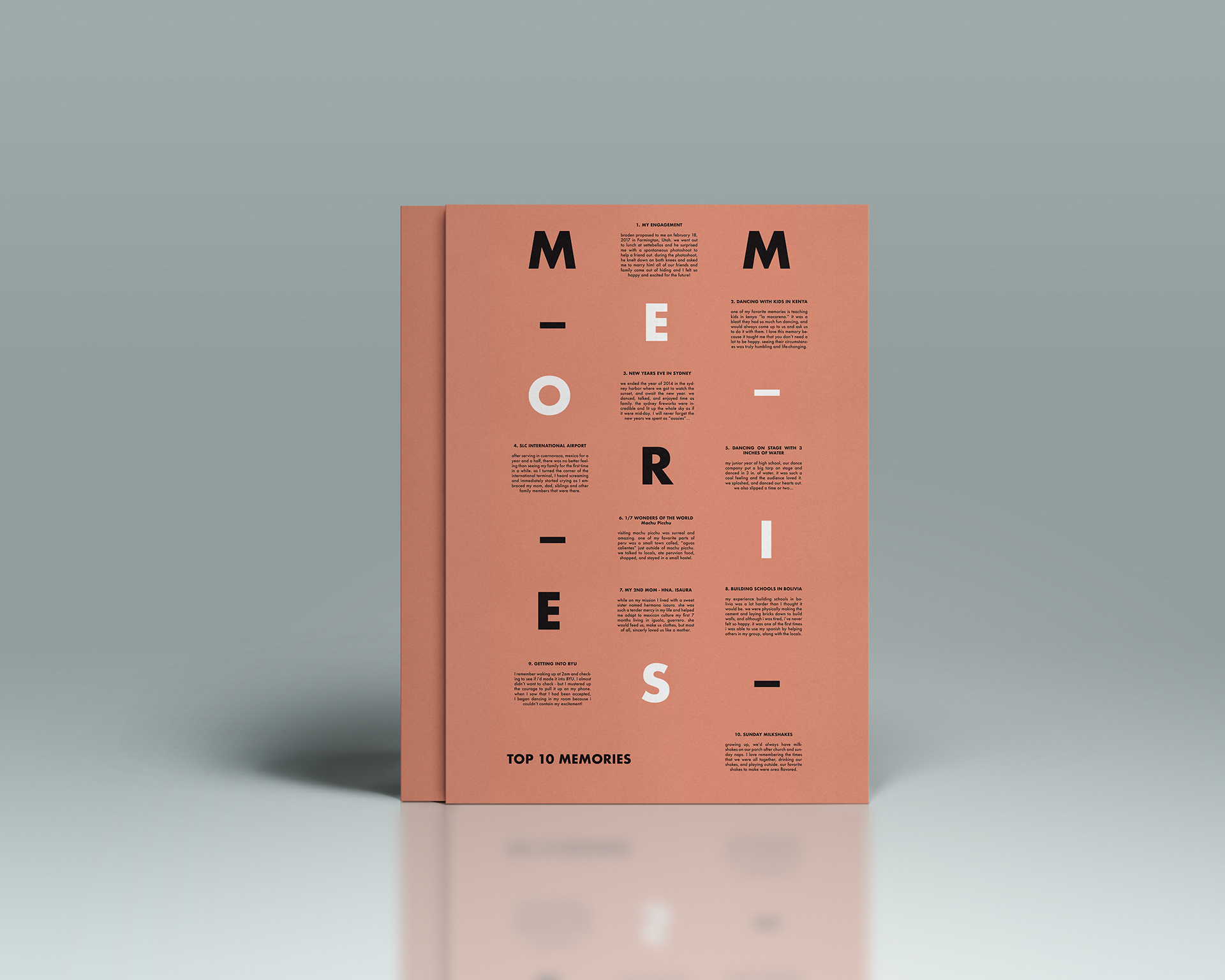 This was an exploration of type, grids, and memories. Here are my top 10 memories as of spring 2017.